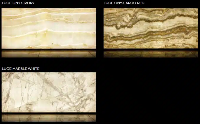 What really sets Luce apart is its 6mm Translucent Special Finish. This rare feature allows the tile to be backlit, creating a soft, ambient glow that turns your wall into a work of art. Whether used in a spa-style bathroom or a dramatic lounge feature, the translucent quality adds a designer touch that feels both high-end and completely original.