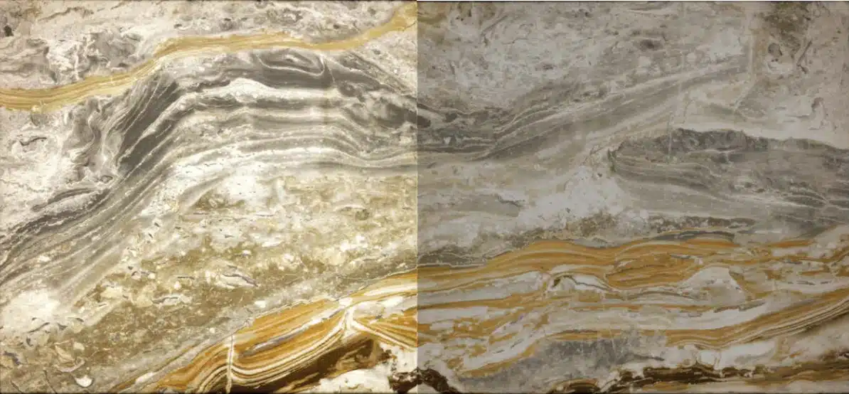 The Full Lappato finish offers a polished look without the high glare of traditional gloss tiles. It’s smooth to the touch and catches the light just enough to highlight the natural beauty of the marble beneath.