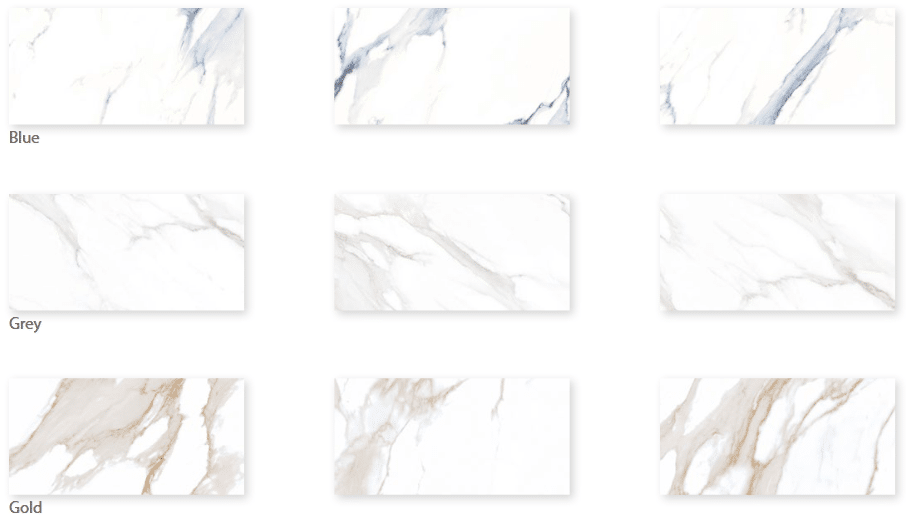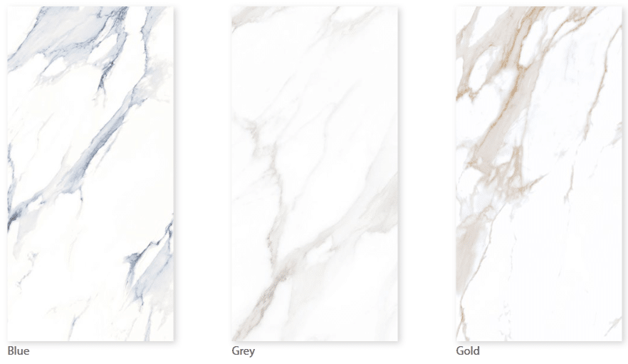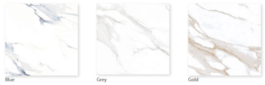 Statuario Mercury is available in three gentle colours — Blue, Gold, and Grey. Each shade is soft, understated, and easy to pair with other interior elements. The Blue option adds a cool and peaceful tone, perfect for bathrooms or relaxed living spaces. The Gold choice brings a warm glow that lifts the room without feeling too bold. The Grey shade is neutral, balanced, and ideal for anyone who wants a classic, long-lasting look.